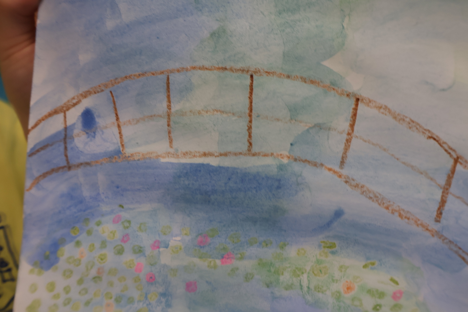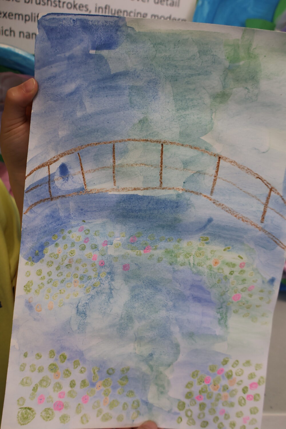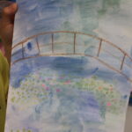One of his most famous and well recognised pieces is “Bridge over a Pond of Water Lilies”, which our class have been looking at and recreating this week using a method called “Wax Resist”. Wax resist is a versatile art technique using wax (crayons, candles, or oil pastels) to repel water-based media like watercolor or ink. By drawing on paper with wax before painting, the waxed areas stay the original color, creating texture, highlights, and, for example, sparkling water effects or intricate,, layered designs.