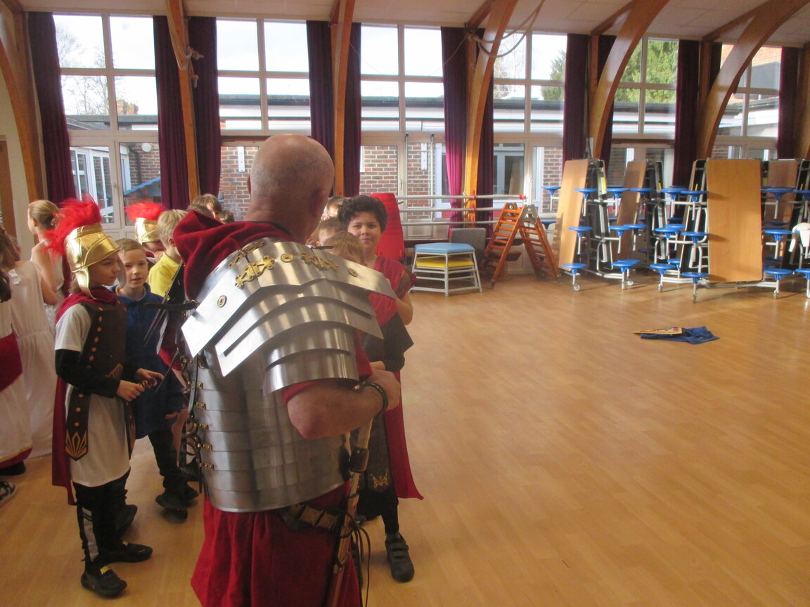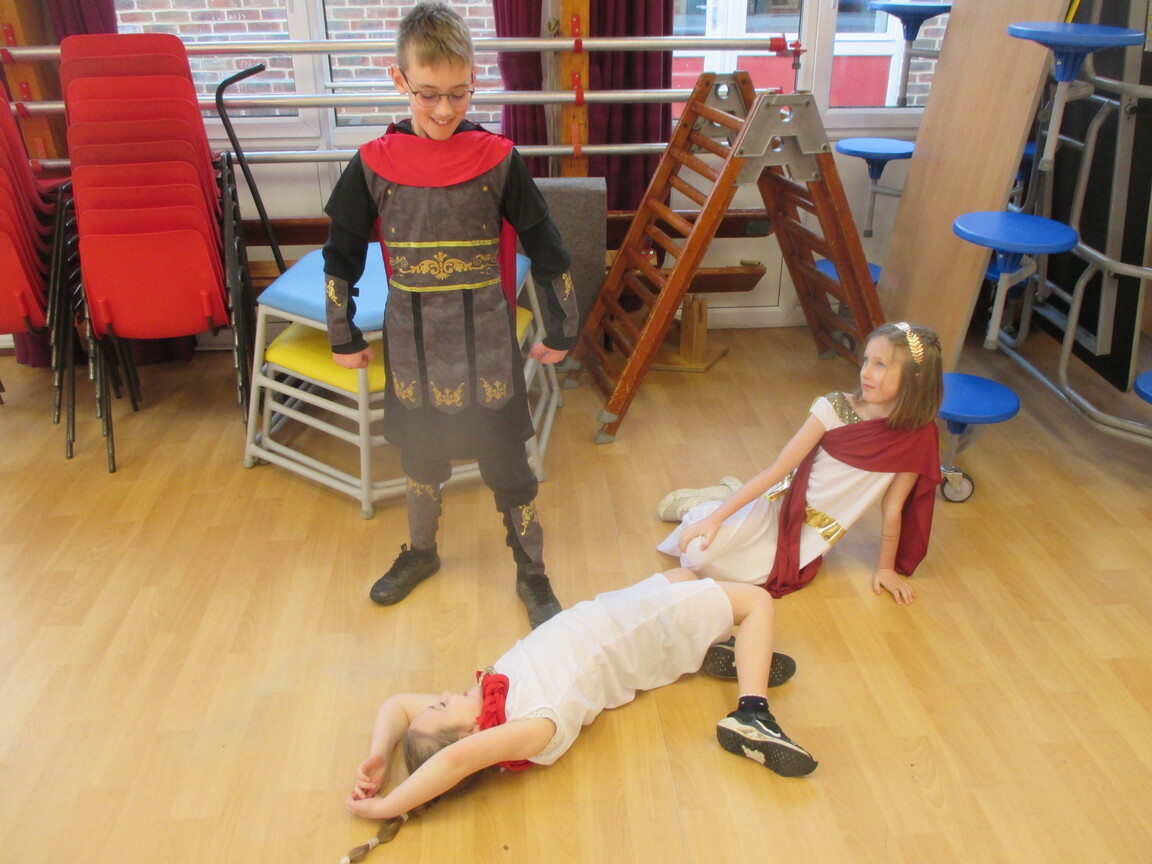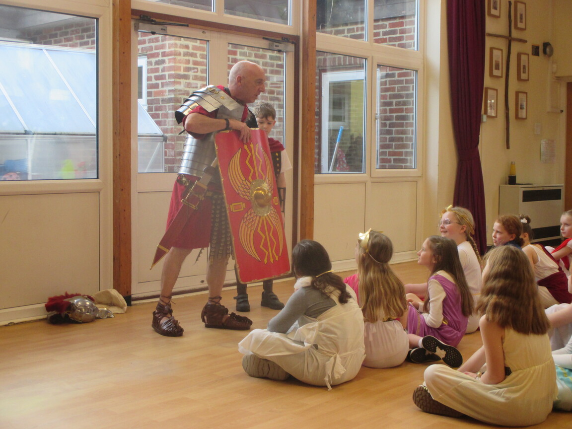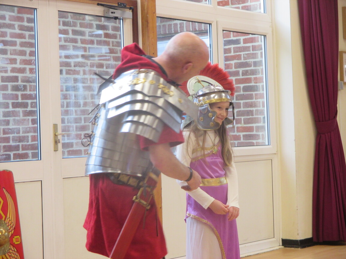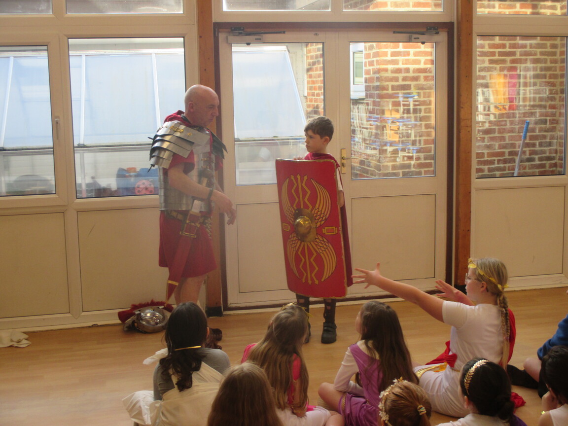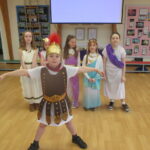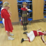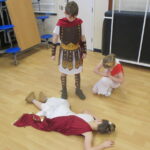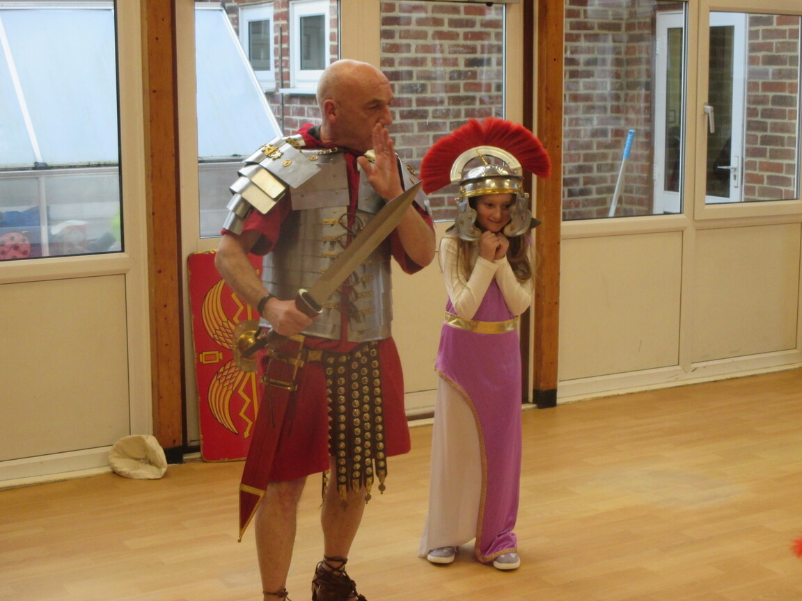 The children took a step back in time and had the opportunity to wear and hold realistic Roman soldier attire. This activity was in conjunction with our current history topic on The Roman Empire. Also during the day, thew children roleplayed various scenes from Roman parties through to everyday scenarios.