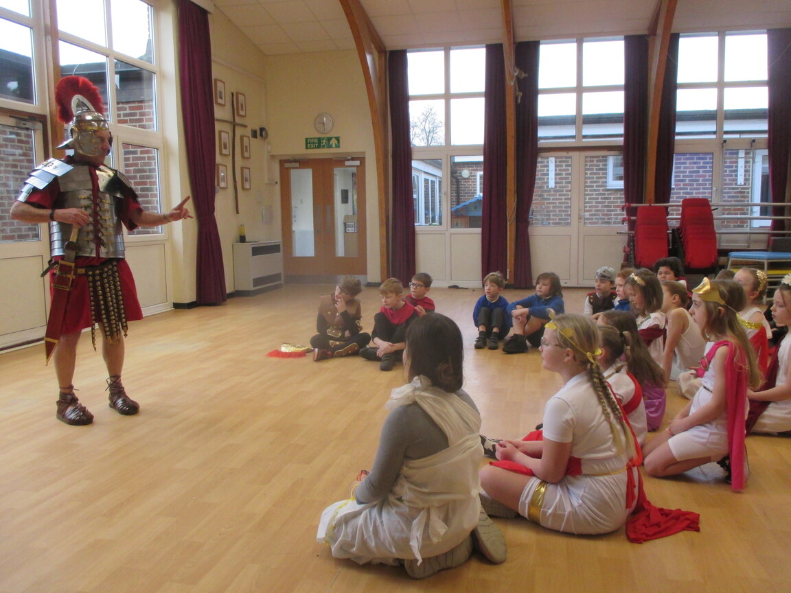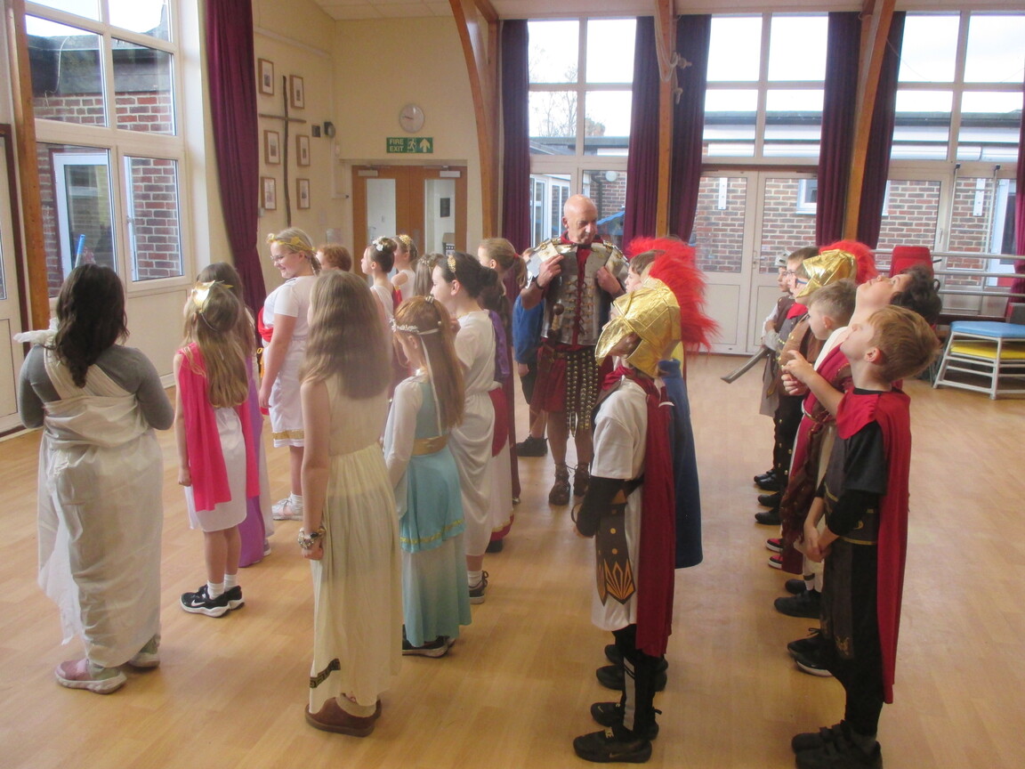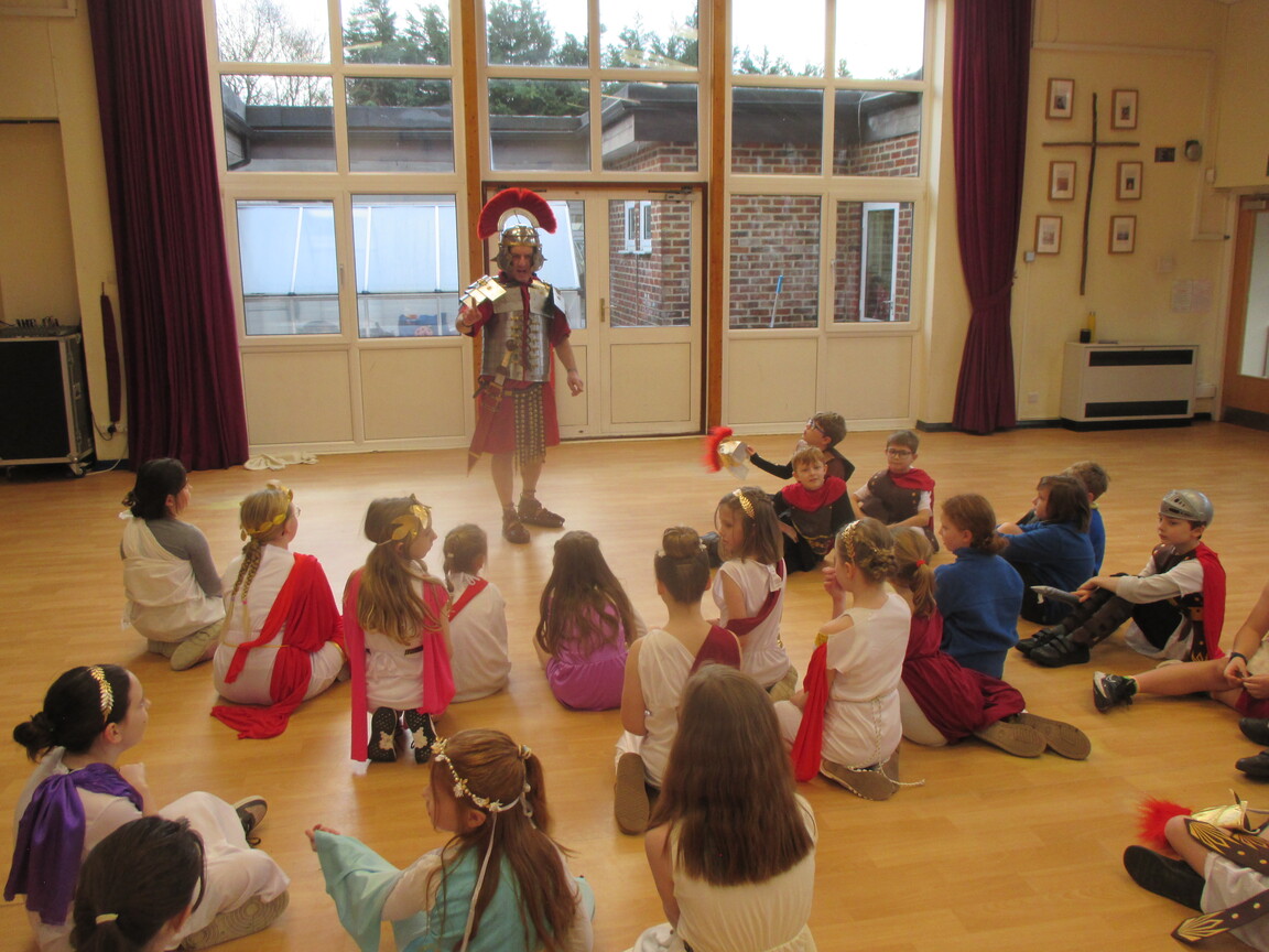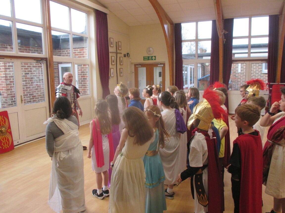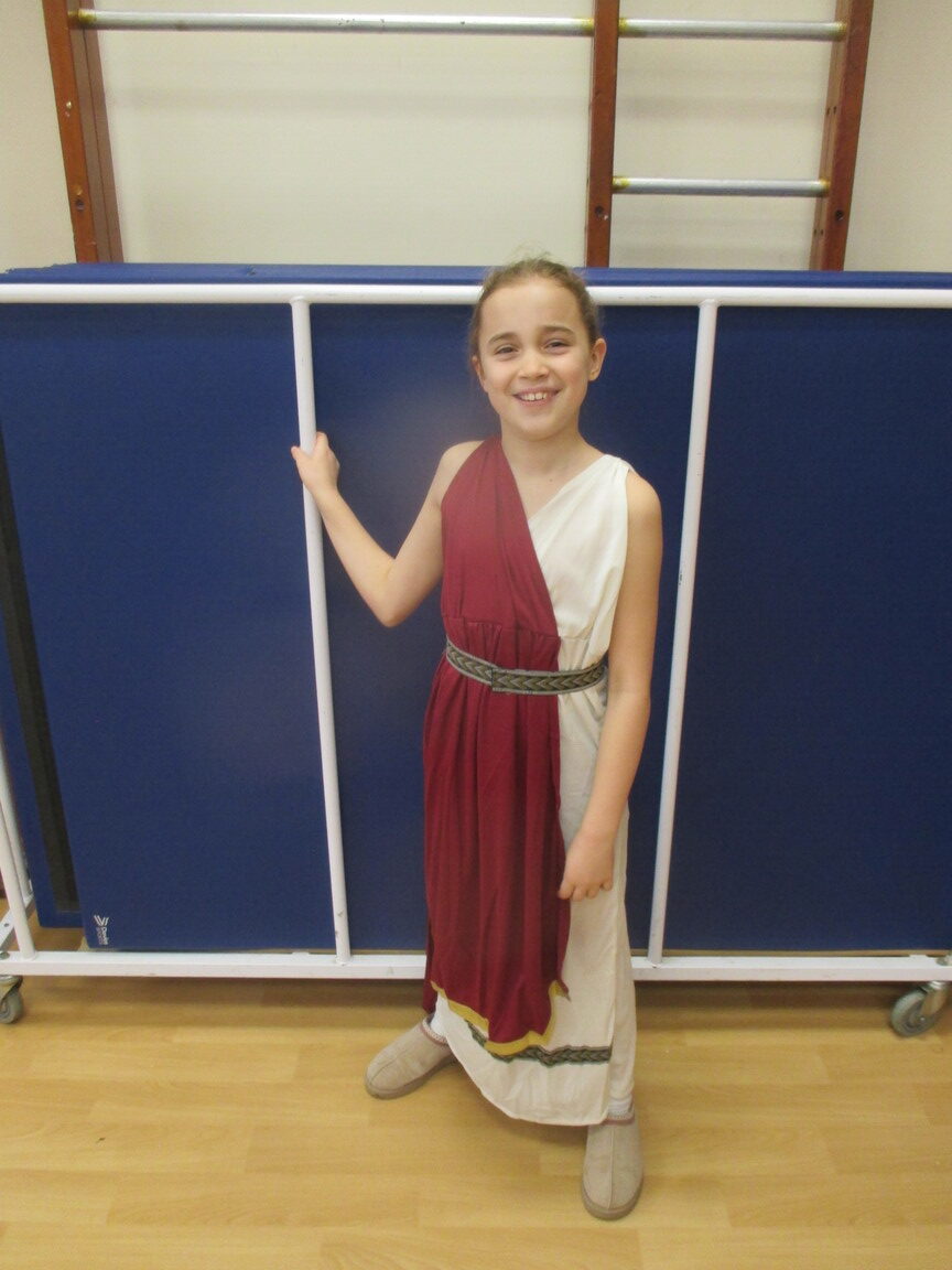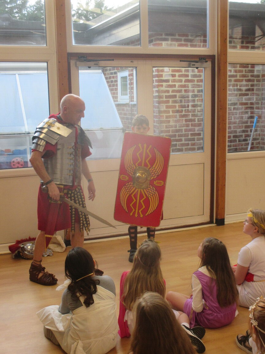 The children took a step back in time and had the opportunity to wear and hold realistic Roman soldier attire. This activity was in conjunction with our current history topic on The Roman Empire. Also during the day, thew children roleplayed various scenes from Roman parties through to everyday scenarios.
