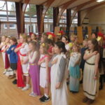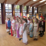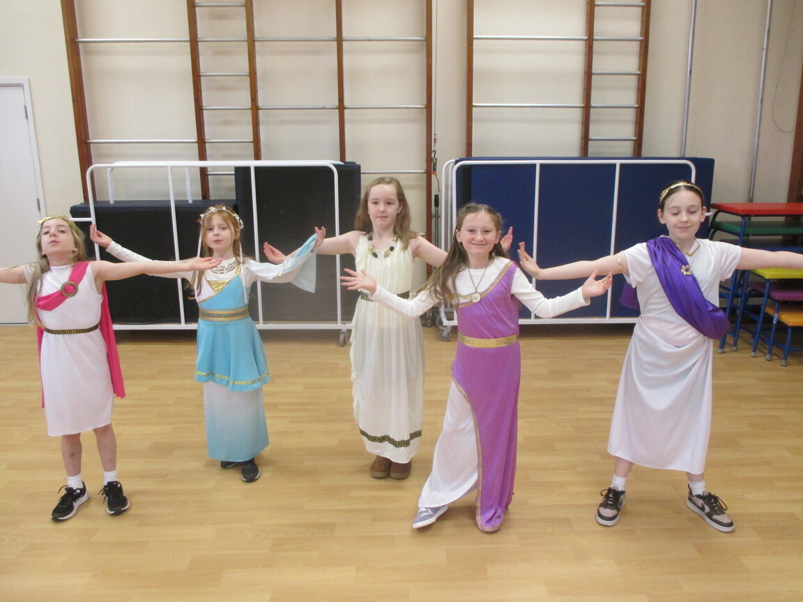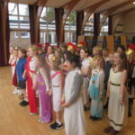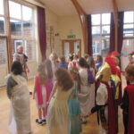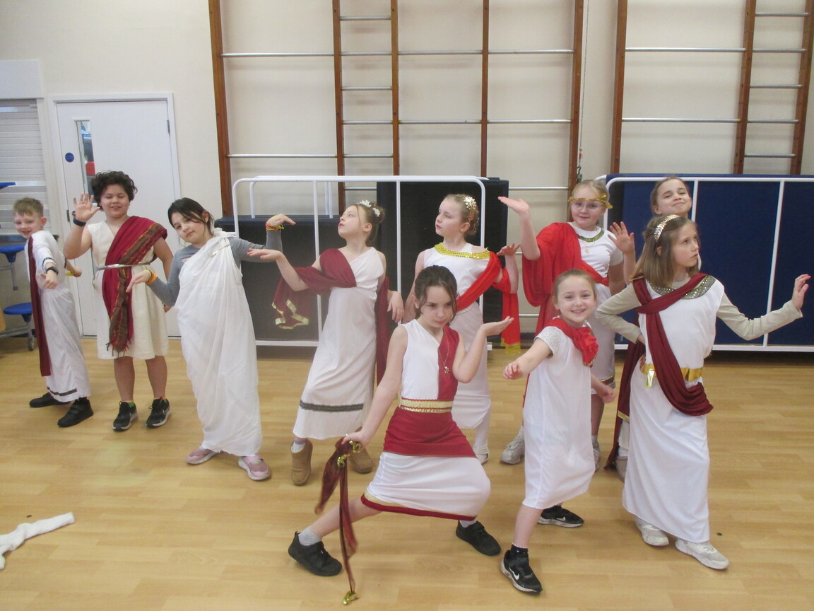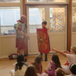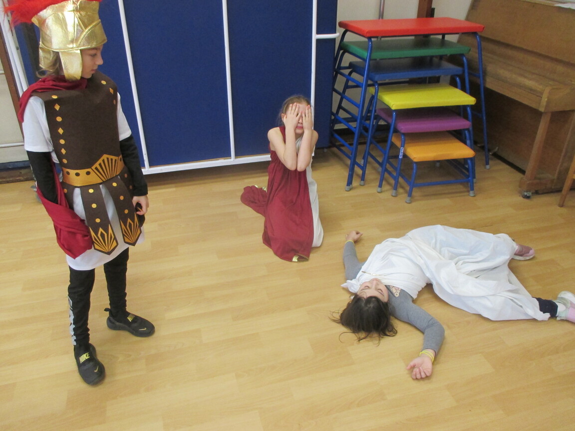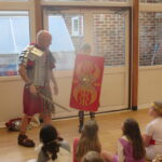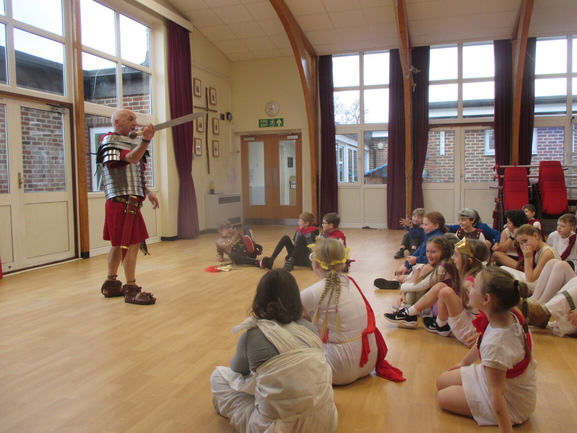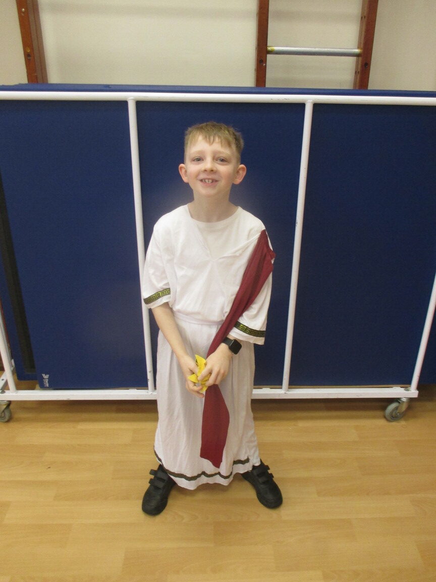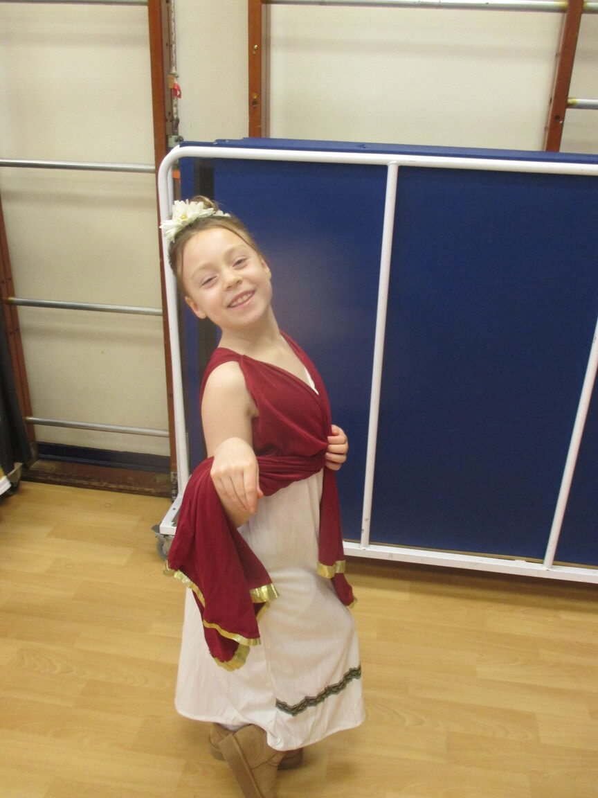 The children took a step back in time and had the opportunity to wear and hold realistic Roman soldier attire. This activity was in conjunction with our current history topic on The Roman Empire. Also during the day, thew children roleplayed various scenes from Roman parties through to everyday scenarios.